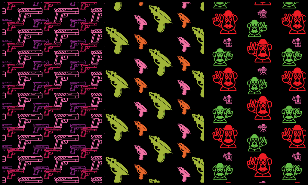 A collection of original patterns exploring repetition, geometry, and visual rhythm in unique color palettes. Each pattern design showcases experimental forms and intricate layering.
